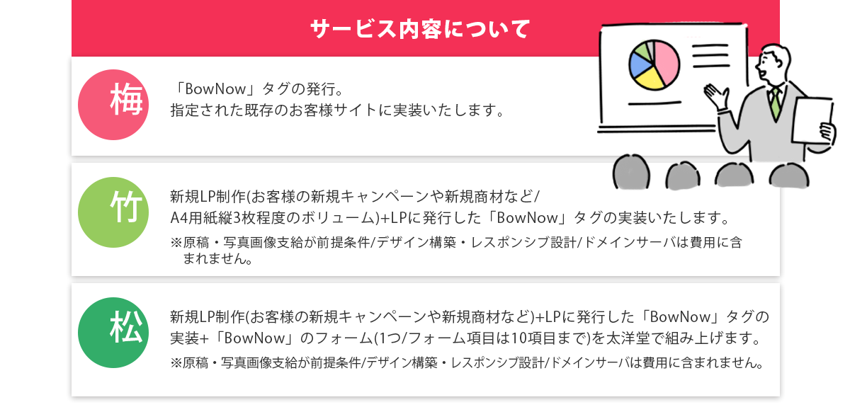 | 「BowNow」の簡易マニュアル送付 | ○ | ○ | ○ |